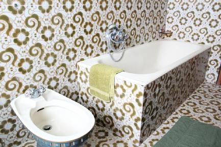 salle de bain avec baignoire, cuisine et salon de 60 m2.